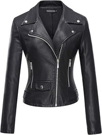 Women’s Black Leather Moto Biker Jacket – Slim Fit Classic Style