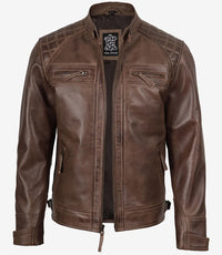 Men's Chocolate Brown Biker Style Leather Jacket - XS