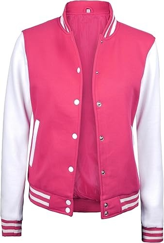 Women’s Pink Varsity Baseball Bomber Jacket – Lightweight Casual Letterman Style