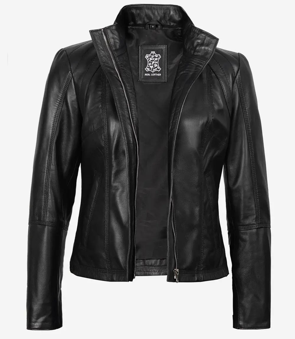 Elevate your style with the Women's Black Cafe Racer Slim Fit Leather Jacket, designed for those who appreciate sleek, moto-inspired fashion with a modern edge. Crafted from high-quality leather, this jacket offers a soft and durable finish that ages beautifully over time.
