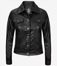 Women's Trucker Four Pockets Black Leather Jacket - XS